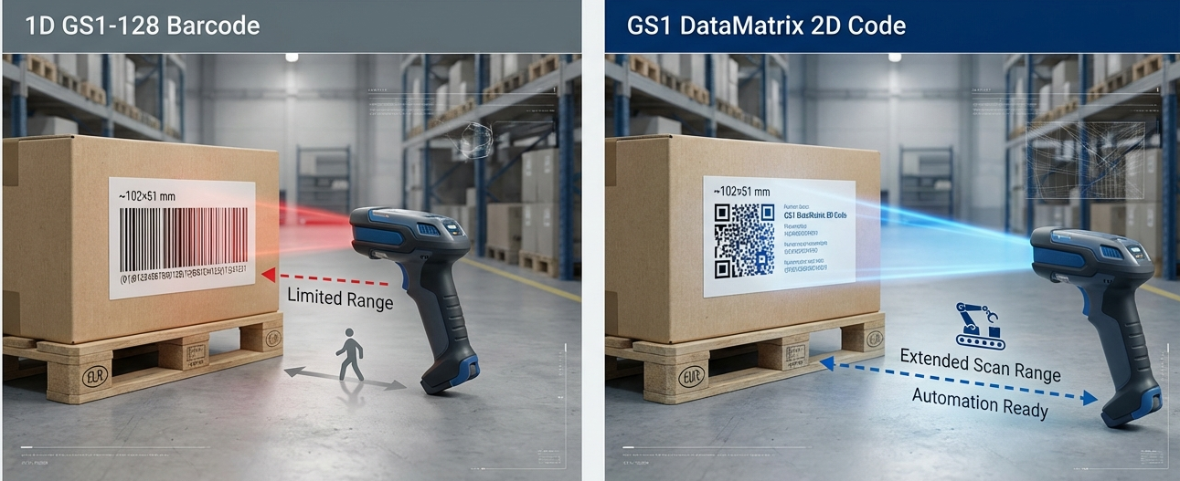Simply replacing the data carrier (1D → 2D), while maintaining the same content (SSCC), delivers measurable operational benefits.